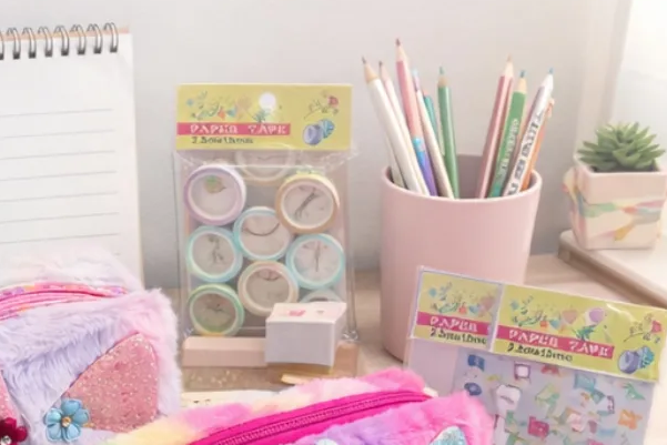 Fita adesiva decorada para usar em projetos de artesanato e decoração.